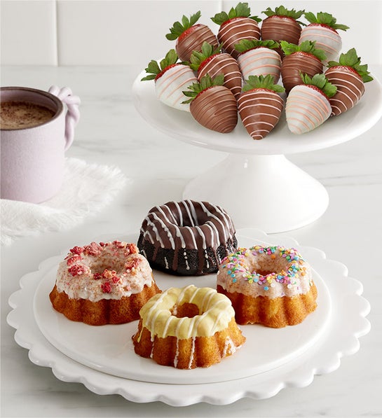Our exclusive cake-and-strawberry combo will make her Mother’s Day even more memorable—and delicious. Start with our mouthwatering bundt cakes in four flavors and toppings: rich dark chocolate, classic vanilla, fresh strawberry, and zesty lemon. Paired with our luscious Mother’s Day Drizzled Strawberries™, it’s a sweet way to celebrate the moms in your life. Shipped in a gift box;